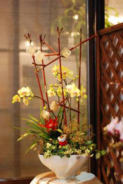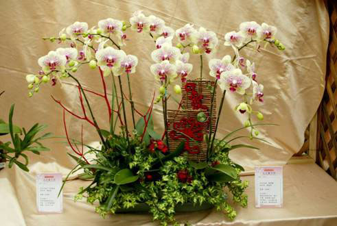 台北花卉村【君臨蘭坊】溫室賣場, 提供多花苞、花期長之蘭花, 讓一整個新春都有蘭花可賞, 歡迎到君臨蘭坊挑選各式蘭花禮。 (上列花禮作品皆出自2010年臺北蘭花節之設計師,部份花禮已經售出,商品以現場為準。) |
