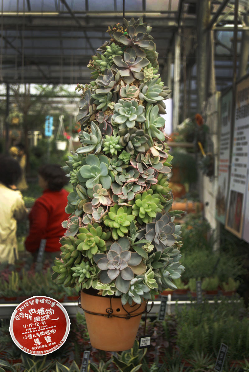 | 最近展場中最應景的組盆,上百棵多肉植物組合而成的聖誕樹!!! |